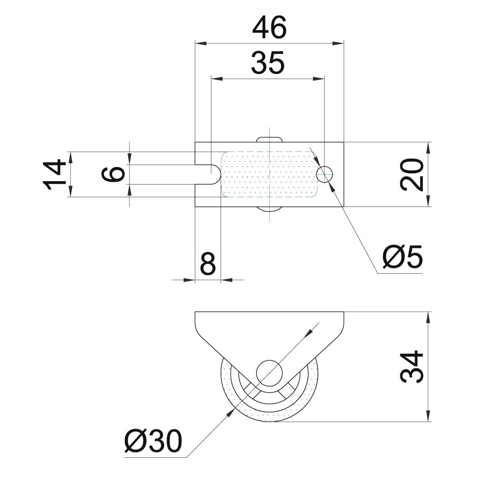 Колесная опора неповоротная Д-30 мм., серая резина.