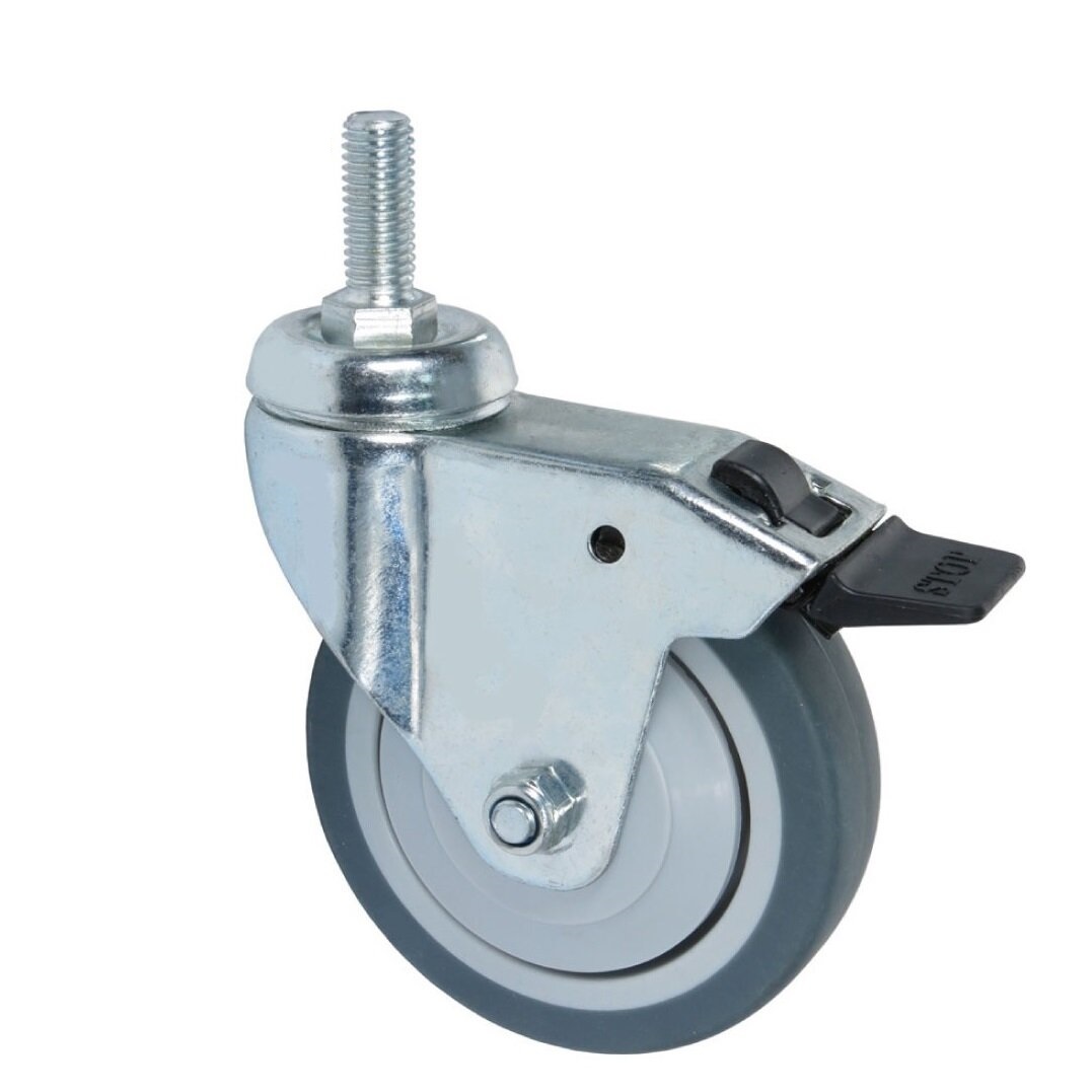 —Колесо поворотное на штыре М12 с тормозом., серая резина 100мм