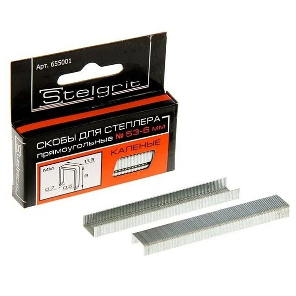 Скобы мебельные для степлера 6*0,7мм (1000 шт.) STELGRIT