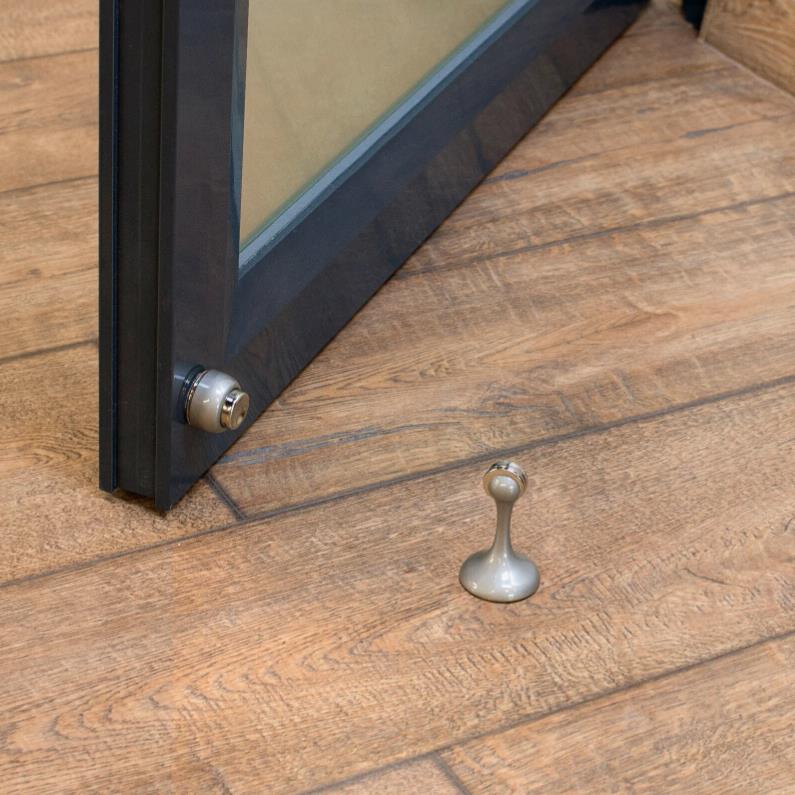 Благодаря мощному магниту, упор исполняет функцию фиксатора, защищающего дверь, дверную ручку и стену от ударов и механических повреждений. Магнитный дверной упор имеет двойной вариант крепления: настенный или напольный. Устройство состоит из двух частей: упор, который крепится к стене либо к полу, и ответная магнитная головка, которая монтируется в дверь.