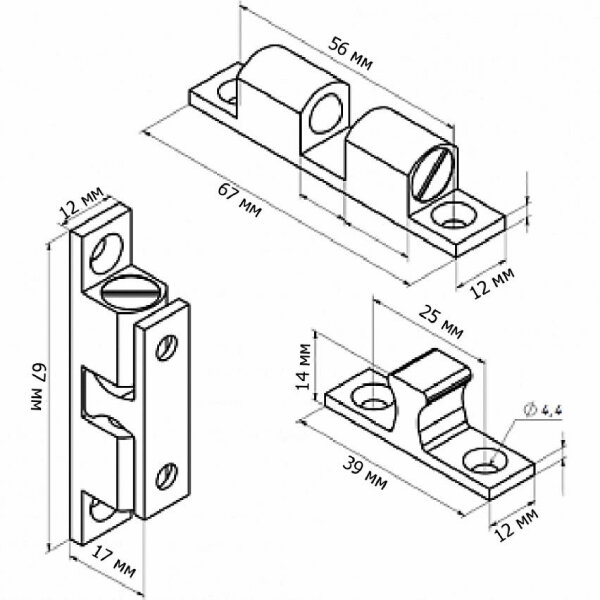 —Защёлка шариковая латунная, 67*12*14 мм