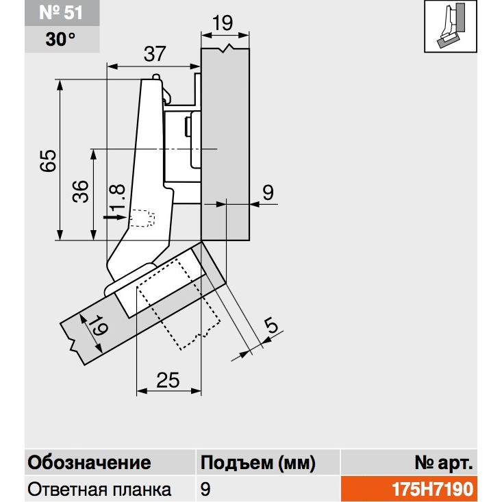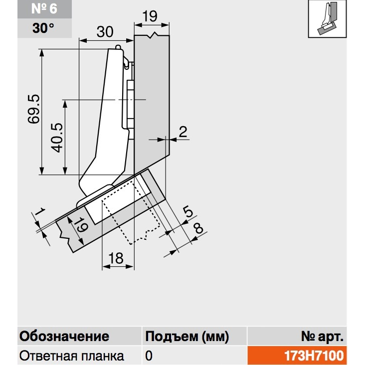—Петля Clip-Top накладная c доводчиком, BLUM (БЕЗ ОТВЕТНОЙ ПЛАНКИ)