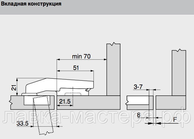 Петля Clip-Top вкладная c доводчиком, BLUM (БЕЗ ОТВЕТНОЙ ПЛАНКИ)