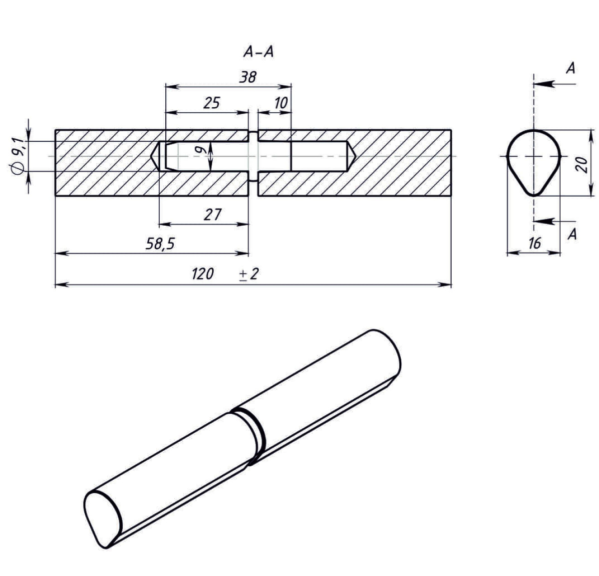 Петля гаражная наварная каплевидная 16х120 мм, б/п