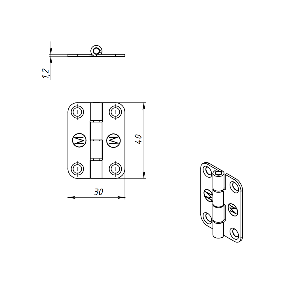 —Петля карточная накладная 30*40 мм, без покрытия