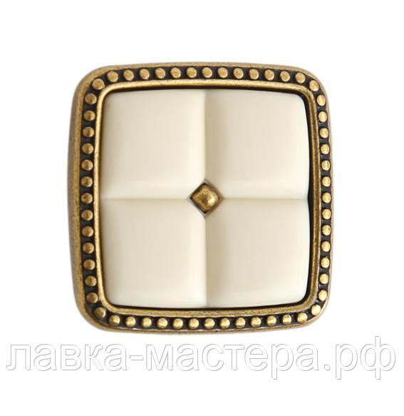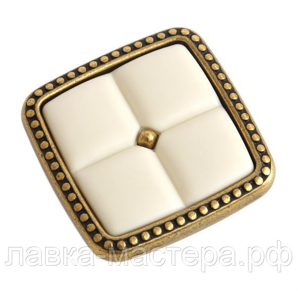 Ручка-кнопка 32*32*24мм, состаренная латунь / слоновая кость