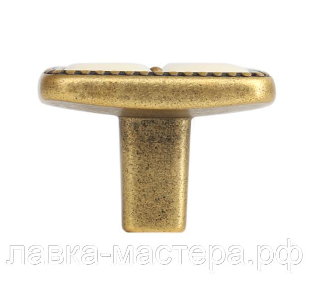 —Ручка-кнопка 32*32*24мм, состаренная латунь / слоновая кость