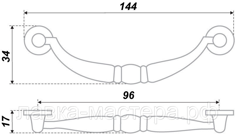 —Ручка-скоба 96 мм, 144*17*34мм, старинная бронза