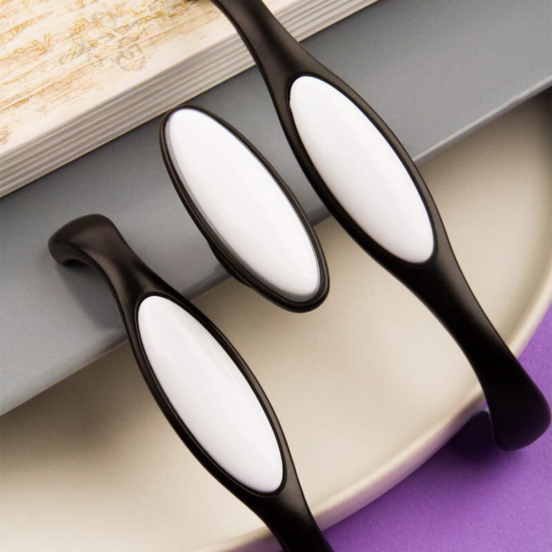 Ручка-скоба с фарфором,128 мм, матовый чёрный