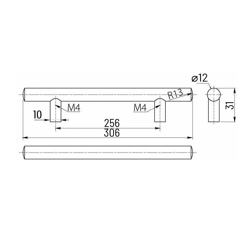 —Мебельная ручка-рейлинг, диаметр 12 мм, установочный размер 256 мм, матовый хром