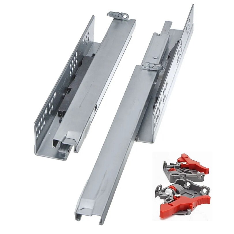 ВНИМАНИЕ: Габаритная длина направляющей скрытого типа на 10-30 мм больше базовой глубины ящика. С учетом этого факта, глубина шкафа должна быть на 30-50 мм больше базового размера L. Например, данные направляющие следует устанавливать в шкаф глубиной не менее 350 мм, поскольку в шкаф глубиной 300 мм они попросту не войдут.