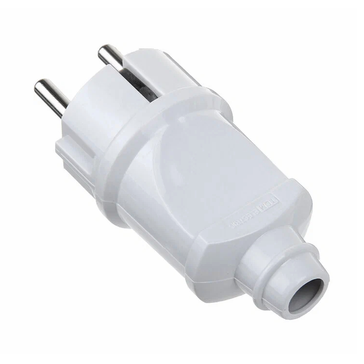 Разборные вилки предназначены для присоединения к электрической сети любых бытовых электроприборов. Достоинство разборной модели в том, что она позволяет заменить поврежденную стандартную вилку или вышедший из строя электрошнур. Прямой ввод электрошнура позволяют присоединять провода с сечением от 0,5 до 2,5 мм². Жилы вводимого провода фиксируются винтовыми зажимами. Заземляющие контакты добавляют электроприборам безопасность эксплуатации.