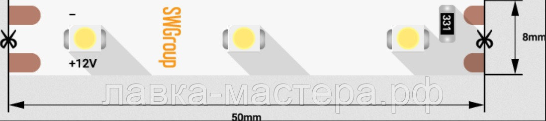 —ДЕ Лента светодиодная 2835/300LED/12V/5M/IP33, 4,8 Вт/м, Теплый белый