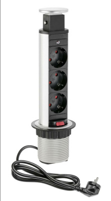 —Блок розеток POP UP Compact, 3 розетки EURO, 250В, max 3,5кВт, серебристый